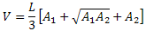 平均端面积算法通过将一个桩号处的材质类型面积与下一个桩号处的材质类型面积相加,将两者之和除以二,然后将结果乘以横断面之间的距离 (L) 来计算体积。