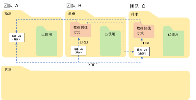 - 从使用的资料包外部参照其他团队的 DWG。