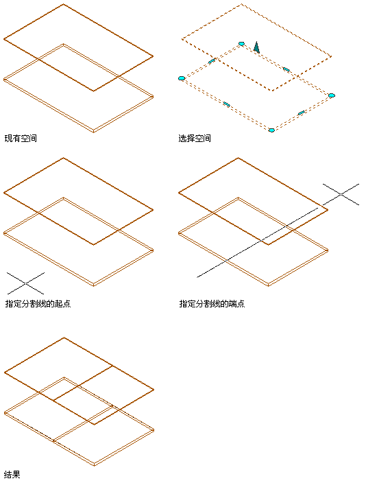 按照您所绘制的分割线将划线或含有划线的块分割成两(或更多)部分。然后您可以选择分割线两侧的任意一部分。如果使用此选项将闭合边界的对象分割为两部分,则分割后的两部分均将重新生成闭合。如果沿长度方向分割“Z”形图案的开放多段线,将会生成许多可选择的段。