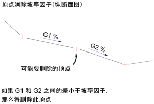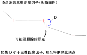 如果发现顶点对于直线位置不是必需的,会根据角度、坡率、长度和三维距离的顶点消除因子来消除顶点。 选定进行顶点消除的点以红色亮显。