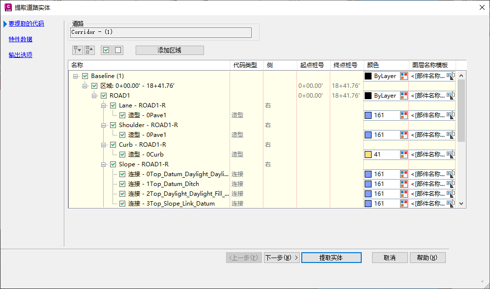 选择将道路区域导出为实体还是 [桩号范围/多边形内/所有区域]: