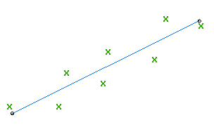 查找。 在图形窗口中选择点或图元后,会使用一个 X 标记每个回归点,并实时显示一条临时的以虚线表示的直线。按 Enter 键结束命令。