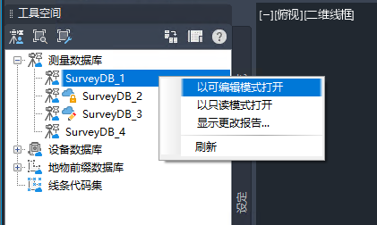 - 在“工具空间”中的“测量”选项卡上,在“测量数据库”集合上单击鼠标右键。