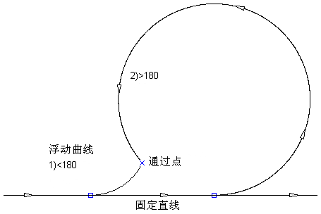 查找。 通过指定要添加曲线的图元终点,来添加由所附着的图元终点、半径和长度定义的浮动曲线图元。