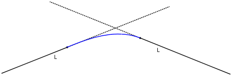 下图显示了两条直线之间的自由缓和曲线。可能的解决方案包括:
