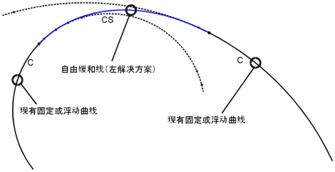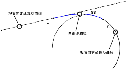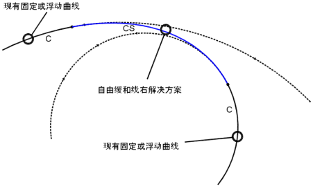 在两个固定图元或浮动图元之间添加自由缓和曲线。