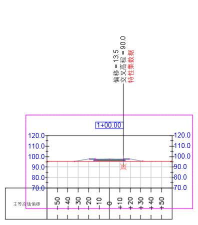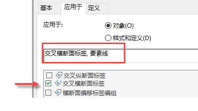 如果您想要在交叉标签样式中包含特性集数据,除其交叉位置显示在横断面图中的对象类型外,还需要选择“交叉横断面标签”对象类型。