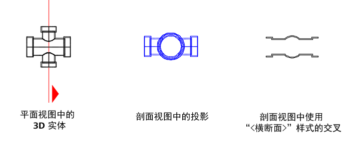 三维实体也可以使用“<横断面>”作为交叉标记样式。通过选择“<横断面>”样式,实体将绘制为表示采样线与实体相交的实际位置。