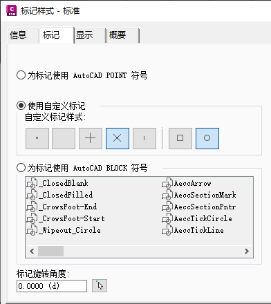 可以将标记样式设置为使用 AutoCAD 点、自定义标记符号或块。