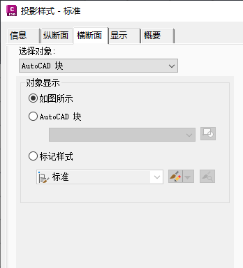 “投影样式”集合中找到。使用“横断面”选项卡可以配置横断面图的显示设置。