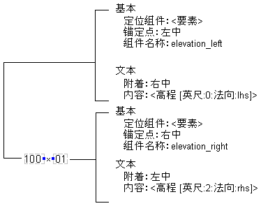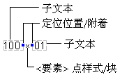 以下示例说明的标签样式可以用于标注带有高程小数点的点位高程。点位高程值的小数点根据创建时指定的块样式或点样式表示。已标记的高程由两个子文本部件组成,每个部件都具有不同的特性: