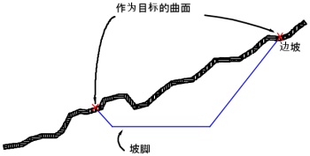 坡脚可以为打开或关闭的地物。坡脚必须是要素线、地块线或其他放坡产生的边坡线。