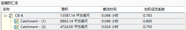显示每个汇流的径流系数和所有连接的汇流的加权径流系数。