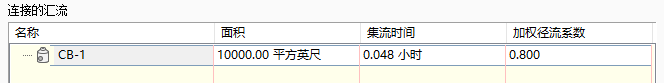 如果没有汇流连接到结构,您可以在“面积”、“集流时间”和“加权径流系数”字段中直接输入汇流值。