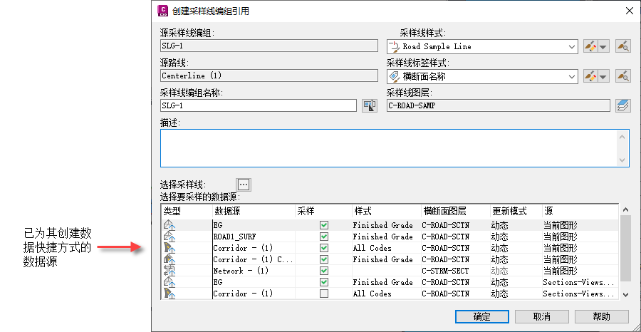 创建采样线编组引用时,已为其创建数据快捷方式的数据源将列为可供采样的数据源。