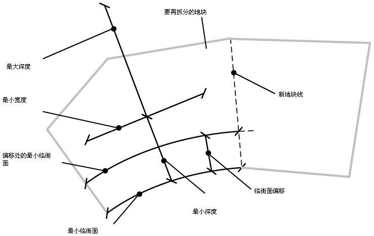 通过拆分现有地块来创建或编辑地块时,可以定义调整地块大小标准。