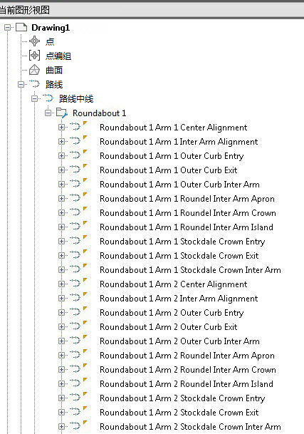 使用“浏览”树中的“环形交叉口”集合,访问图形中的环形交叉口。