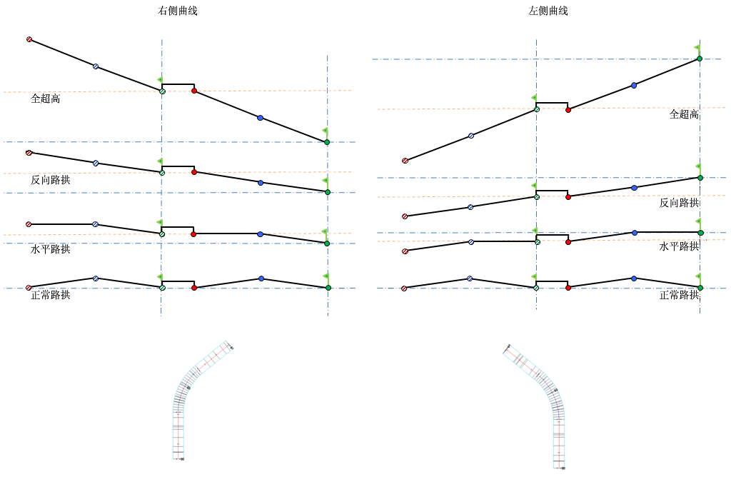 保持中间带造型表示应用超高时,中间带将升高以适应超高。此选项将保持中间带造型,而
