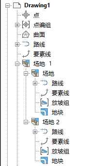 每个场地拓扑集合都包含路线、放坡和地块的集合: