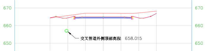 如果交叉管道移动到路线上其它桩号,则标签将使用新的桩号和高程信息进行更新。