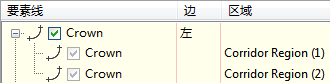 如果已选择代码相同的一组要素线线段中的一条要素线,则选择“合并相邻区域要素线”时将自动选择该要素组中所有其他要素线(无论它们是否处于连续区域),并且各要素线线段的复选框将灰显。