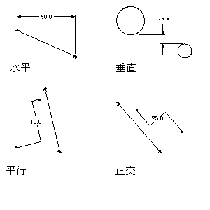 可以为所有类型的成对几何图形定义。定义两个要素之间的值。距离标注的值不能为负数。在两条直线之间添加距离标注时,意味着这两条直线将以给定间隔平行。