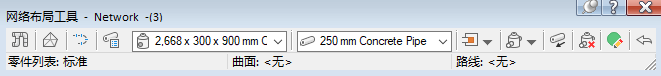 当前选定管网中参考的零件列表名称、曲面名称和路线名称显示在此工具栏的底部。