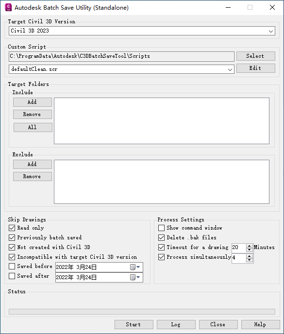 可以使用 Autodesk Batch Save Utility 同时打开多个图形和模板文件并将其保存为 Autodesk Civil 3D 的指定版本。
