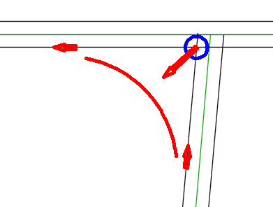 该路线被创建为加铺转角路线。如有需要,您可以在“路线特性”对话框的