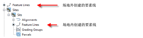 场地外的要素线将显示在“浏览”内的“要素线”集合顶层。场地内的要素线将显示在“浏览”内的“场地”集合中。