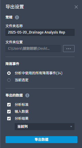 - “当前所选”会导出在“分析结果”顶部指定的降雨事件。