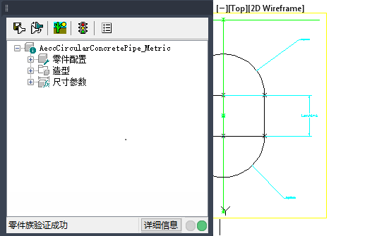 每项内容均表示一个零件族,例如混凝土管道、铸铁管道和混凝土椭圆形涵洞。每个零件族均包含一个此零件族中零件尺寸的集合。例如,在混凝土管道零件族中,存在多种可用于此零件的预定义零件尺寸。使用零件生成器,您可以创建和修改零件族以及各个零件尺寸。