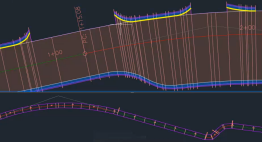 创建一个道路横断面,可以沿路线按一定的间隔放置该横断面,然后连接在一起以形成道路模型。 |
