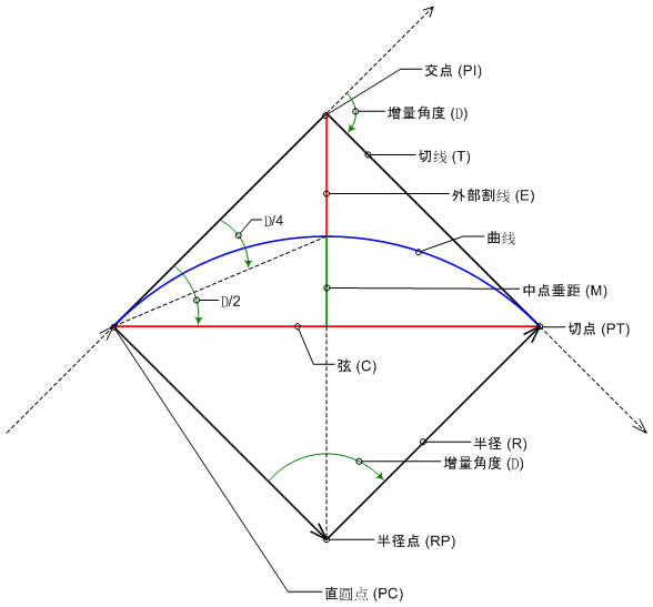 下图显示了 Autodesk Civil 3D 使用的曲线参数。