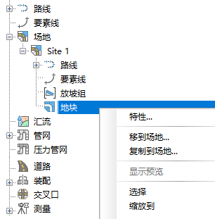 通过右键单击命名场地集合下的“地块”集合,可以访问这些特性。