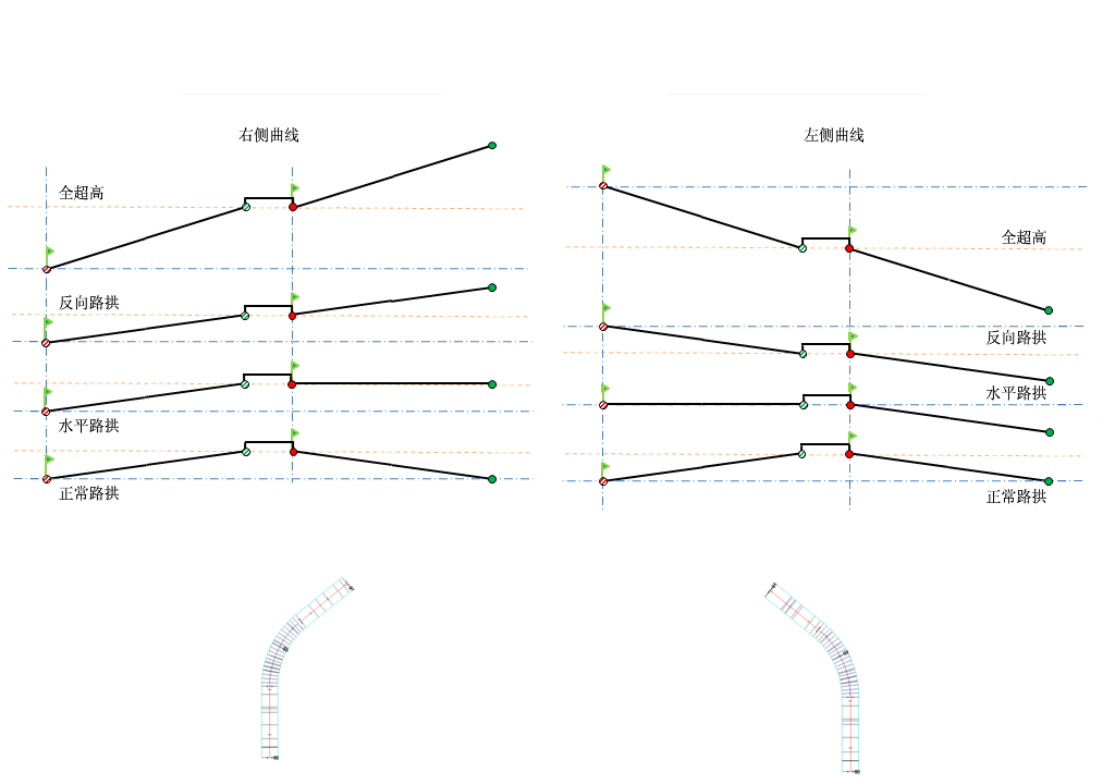保持中间带造型表示应用超高时,中间带将升高以适应超高。此选项将保持中间带造型,而