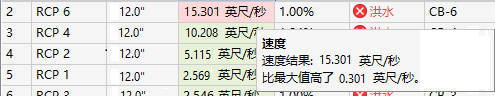 如果速度低于“设置”中指定的最小速度或高于最大速度,则该列显示为红色。将光标放置在该单元上时,工具提示将会显示,以表明该速度低于最小值或最大值的量。