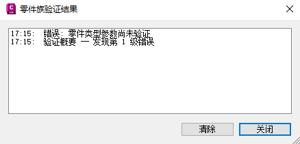 成功完成这些步骤后,将完成对零件的验证并更新状态栏,同时出现一条消息,表明零件验证是否成功。