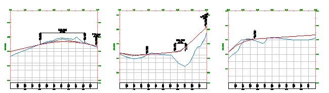 创建纵断面图时,请指定哪些现有纵断面将显示在栅格上。然后使用这些纵断面作为参照,以便在栅格上绘制新的布局纵断面。