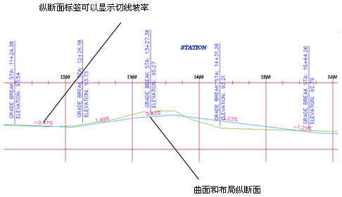 使用纵断面图栅格来显示平面路线的一个或多个纵断面。