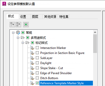 - 选中默认情况下要参照的样式和设定的复选框。在以下示例中,仅选择了“参照模板标记样式”。