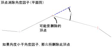 减少沿最佳拟合图元生成的顶点数。顶点消除因子将忽略偏转小于角度公差的顶点。偏转角度越大,消除的点就越多。角度公差以角度单位度量。角度公差必须小于补充距离。