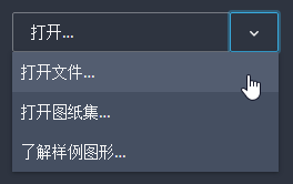 - 单击向下箭头可显示用于打开图纸集或采样图形的其他选项。