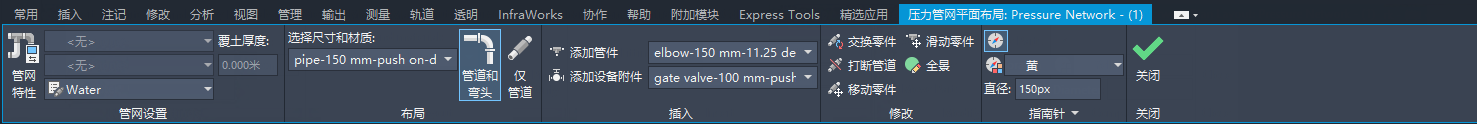- 在“浏览”选项卡的“压力管网”