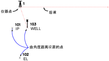 使用从前一个后视点旋转的角度创建地物顶点。要使用此命令,地物中必须存在两个或两个以上的顶点。
