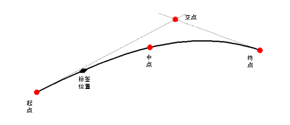 对于缓和曲线标签,除标签位置、起点、终点和中点定位外,还有交点定位。