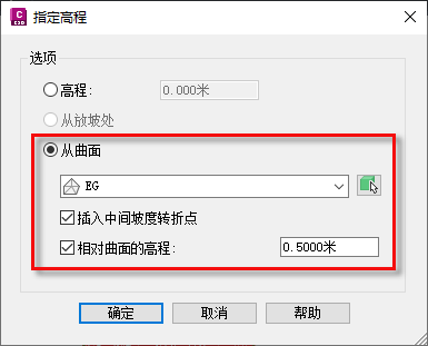 从曲面指定要素线高程的步骤