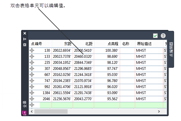 某些对象类型(例如路线和纵断面)使用“全景”窗口来显示构成此对象的图元表。