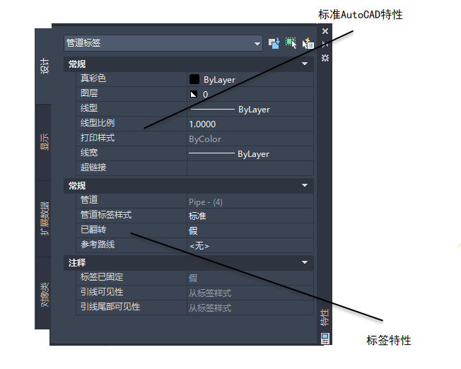 编辑管道标签的 AutoCAD 特性