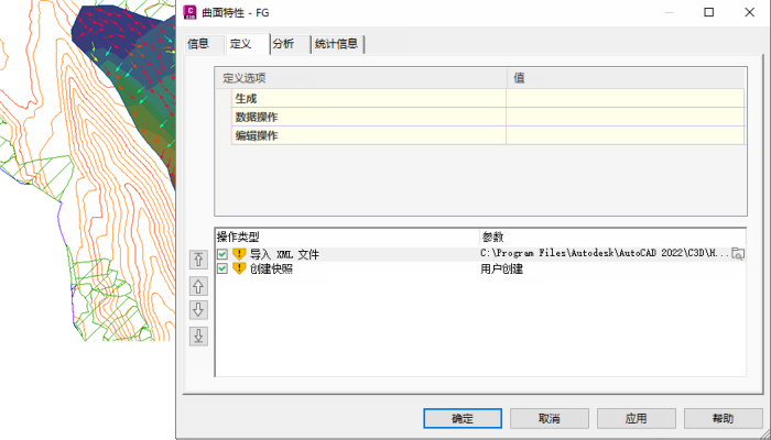 显示曲面特性的特性编辑器